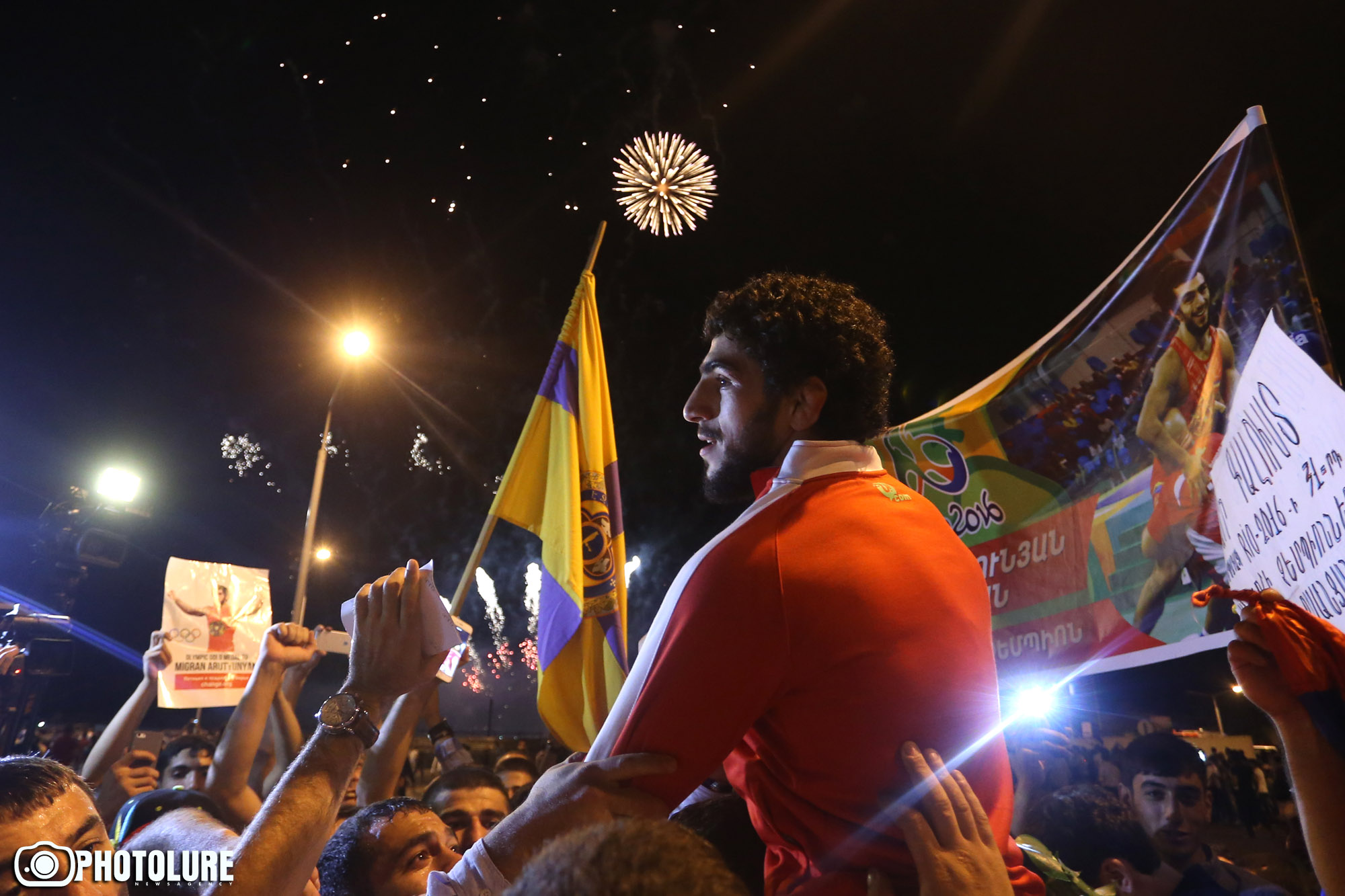 Հարյուրավոր քաղաքացիներ օլիմպիական չեմպիոններին ուղեկցեցին դեպի նրանց համար նախատեսված ավտոբուսը, իսկ բազմաթիվ քաղաքացիներ մոտենում էին Միհրան Հարությունյանին, ողջունում և քաջալերում, ասելով, որ ինքը օլիմպիական բացարձակ չեմպիոն է: